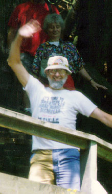 That's my Dad waving, with my Mom and brother Al (headless; he doesn't normally look like this) behind him.