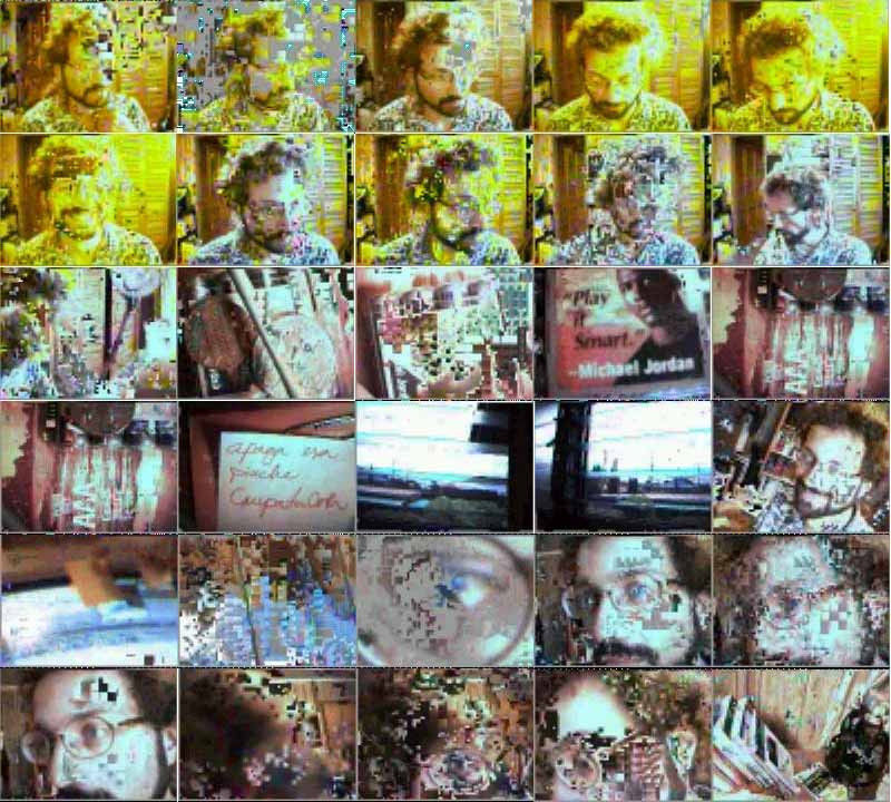 In some of the shots he is trying to focus in on various objects around the room or out the window. You can click on the picture above for an even larger (800x720, 98k) image if you want to see more detail and waste bandwidth! Note: I especially like some of those last frames where you can actually see the circuitry inside my brother's head!